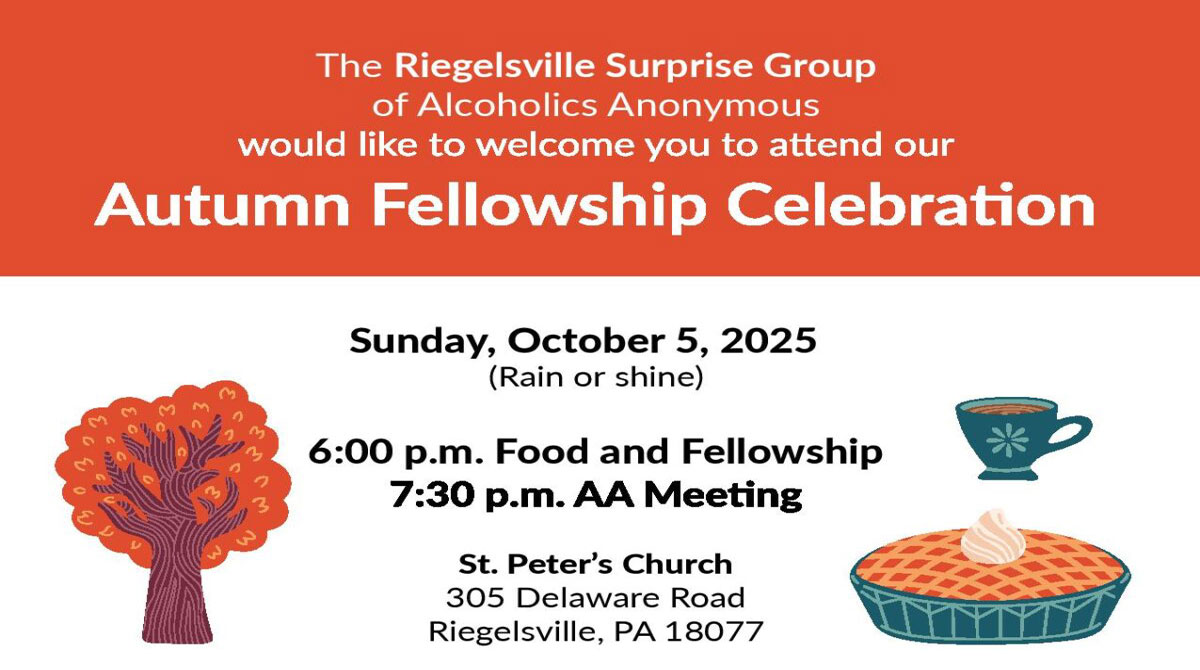 St. Andrew’s Evangelical Lutheran Church 20 Dill Ave, Perkasie, PennsylvaniaCome celebrate the Home Group (the top of the AA Triangle) with food and fellowship at a fun workshop event!All are welcome!Bring your Home Group’s favorite dessert for bragging rights. A group prize for best desert will be awarded!